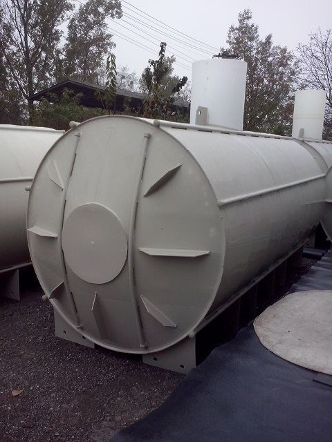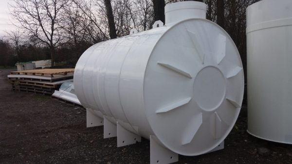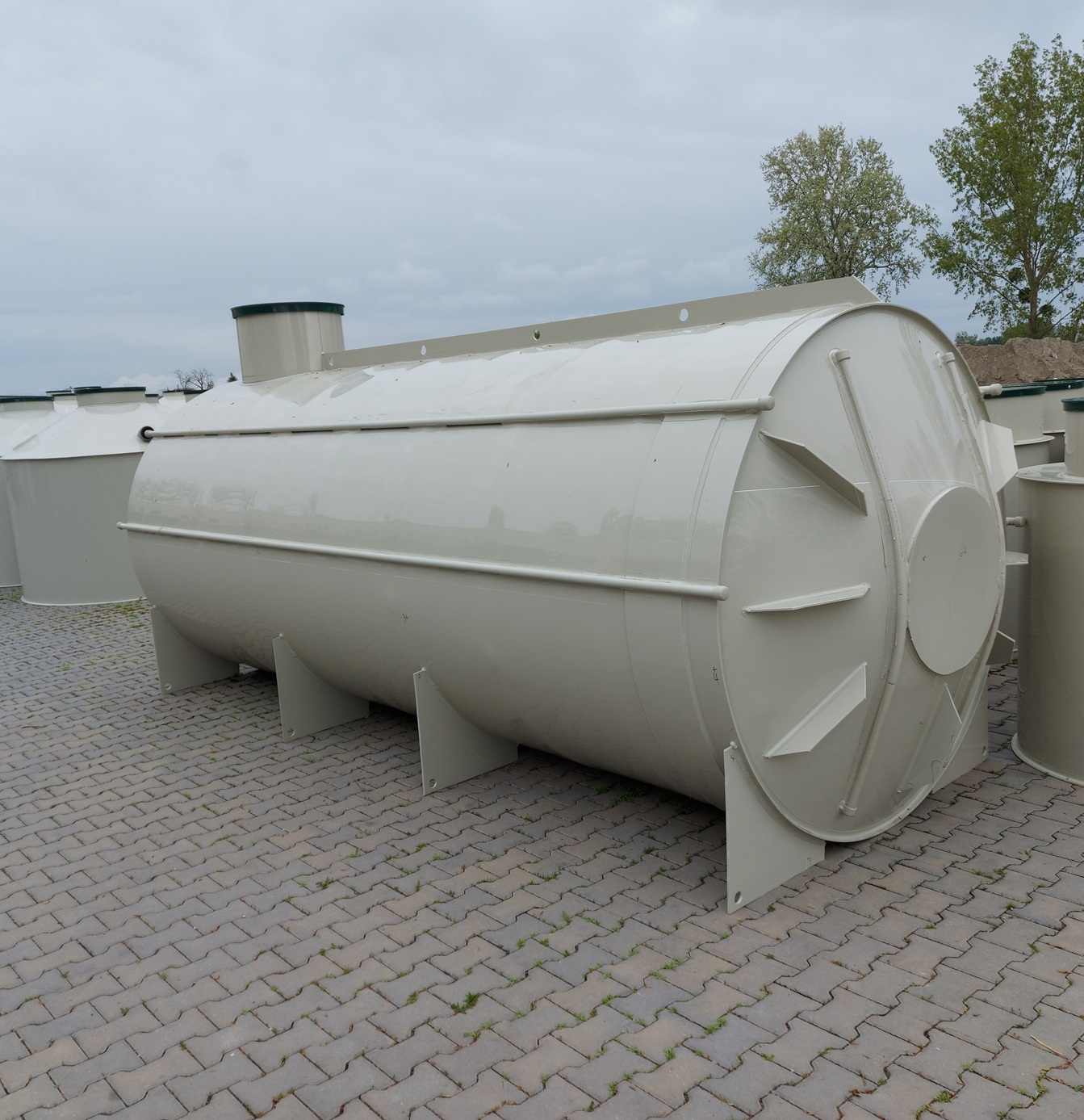 Plastové nádrže stojaté sú vyrábané z prvotriedneho PP-C o hrúbkach 8 mm a 10 mm, stačí ich obetónovať zhora a na obsyp je použitý riečny štrk frakcie 4/8. Riešenie obetónovania plastovej podzemnej nádrže odstraňuje nedostatky betónových aj plastových nádrží a je využiteľné vo všetkých terénoch. Ide o cenovo výhodnejšie riešenie ako samonosné plastové nádrže, ktoré však z dôvodu nutnosti obetónovanie ide na úkor pohodlia zákazníka. Samozrejmosťou je certifikát výrobku, atest vodotesnosti a všetky dokumenty potrebné ku kolaudácii.